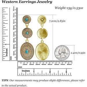 Western Turquoise Earrings Vintage Silver Gold Concho Boho Country Jewelry