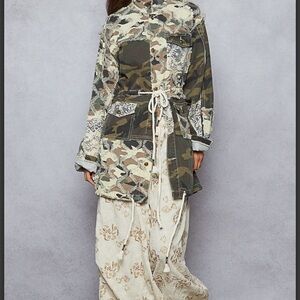 Stylish camouflage utility jacket. Features button closure and drawstring waist. Perfect for layering. NWOT. Need room in my closet.