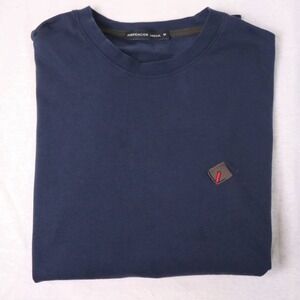 Color: Deep navy with small embroidered logo emblem on chest (a distinctive geometric square with red accent)