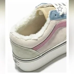 Women’s Vans Old Skool Stackform Blue & Pink Sherpa Platform Shoes. Brand new.