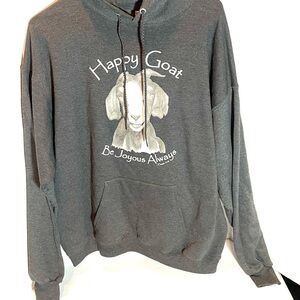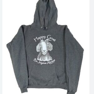 Happy Goat Unisex Gray Hoodie with Kangaroo Pocket Size Large