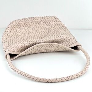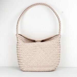 Handwoven using luxe leather, this bag features a magnetic closure and is perfectly sized to hold essentials like your phone, card case, keys and lip gloss.