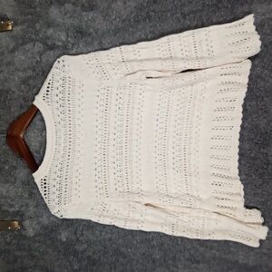 Chic ivory knit sweater with intricate patterns. Ideal for layering. good condition no flaws. cottagecore , festival