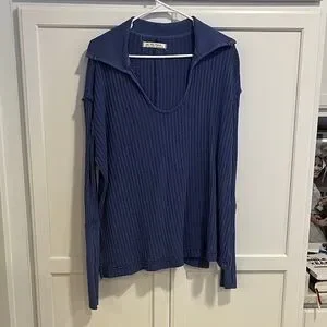 Free People Blue Waffle Knit Hoodie