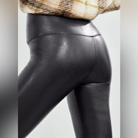 These are high-rise leggings with a wide waistband for a smooth silhouette. They're made with our Premium Vegan Leather from Japan, crafted for superior shape retention, easy care and an authentic look and feel.