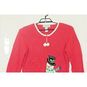 Tiara Intl Red Christmas Cardigan Snowman Full Zip Ugly Sweater Women’s M