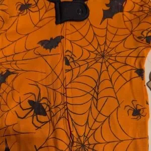 Brand New With Tags Infant Halloween Onesie By Honest. Size 0-3 Months. Colors: Orange with Black spiders and webs. Perfect for Halloween! 100 percent organic cotton. Full front zipper. Smoke free home.