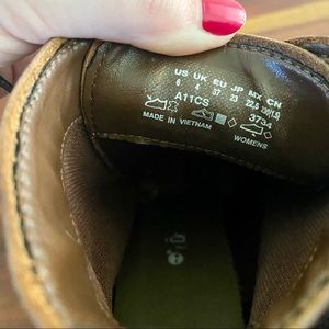 TIMBERLAND Cognac Leather Lace Up Chunky Heel Boots