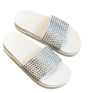 Catherine Women's White Fitz Embellished Slide Sandals Open Toe Size 8 US NWOB