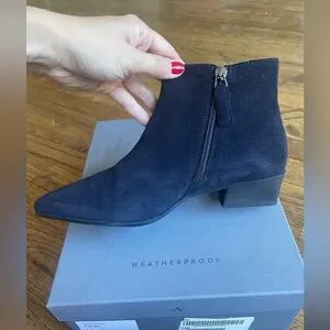 Aquatalia black suede booties. Padded, made in Italy. New only tried on indoors. Weatherproof suede. Low heel 1.5”. Zip closure. Comfortable walking bootie. Size 7.5.