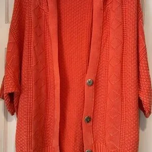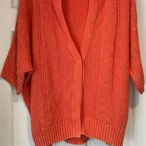 Rare Free People Coral Distressed Snap-Front Knit Hoodie Short Sleeved Size L