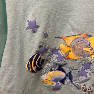 NWOT vibrant fish design with star accents. Perfect for ocean lovers. Size XL. 100% cotton. Please note that this tee shirt is teal, but in some pictures, it looks paler due to the lighting. Never worn; brand new! Comes from a pet-free, smoke-free home.