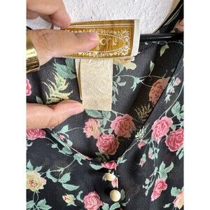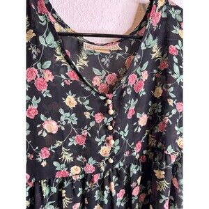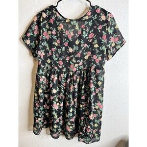 Vintage Bonjour Floral Button-Front Babydoll Dress Short Sleeve Black Women’s M