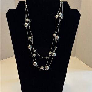 This elegant silver pearl necklace adds a touch of sophistication to any outfit. Perfect for both casual and formal occasions.