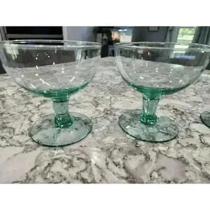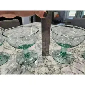 4 Hand Blown Glass Pistachio Green Dessert Sorbet Goblets