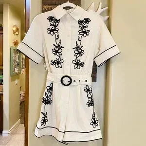Anthropologie Belle Vere floral embroidered one piece belted romper NWT