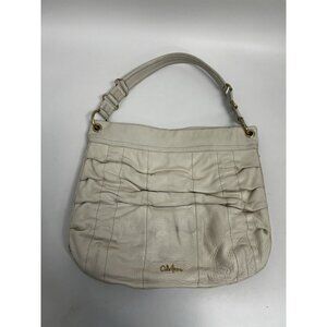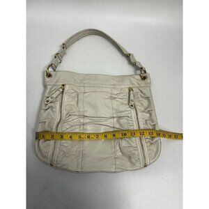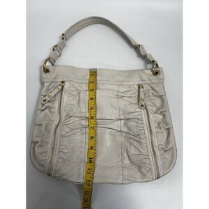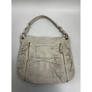 Cole Haan Ruched Cream Genuine Leather Hobo Shoulder Bag Gold accents Zipper