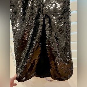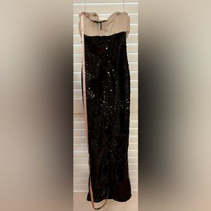 Elegant strapless dress. Features a large white bow. Shimmering black fabric. Perfect for evening events. Reposhing because I can’t fit it :(