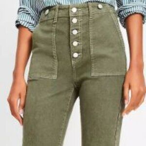 NWT LOFT Women's Petite High Rise Flare Jeans in Evening Olive SZ 34 MSRP $90