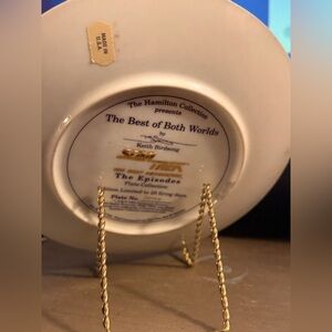 This Star Trek collector's plate features a vibrant design with a yellow trim, perfect for fans of the series. Add a touch of sci-fi nostalgia to your home decor.