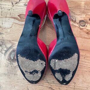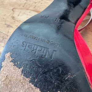 Beautiful Vintage lipstick red ankle strap pinup heels. Nickels brand, made in Italy, genuine leather. Excellent vintage condition, see photos. Approx 3” heels. Size 8.
