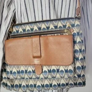Fossil Blue and Brown Crossbody Bag. 13 x 10 x 2 Inches
