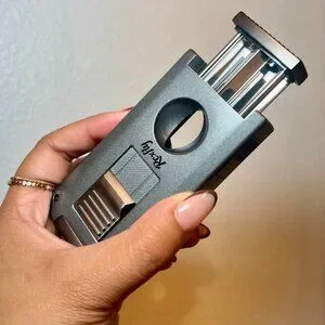 High Quality 5-in-1 Torch lighter】 This versatile lighter combines a holder, punch, V & straight cutter, and 2 jet flames—meeting multiple needs with one lighter. The cutters feature a smooth pop-out design for quick and effortless use, improving efficiency for you. The 0.3-inch punch is compatible with most sizes up to 60 ring gauge, ensuring smooth airflow for a better experience. This unique multifunctional style makes it stand out as a practical and eye-catching partner for any occasion