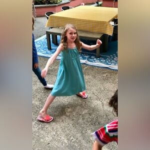 Soft flowy blue girls sundress. Reversible! One side is a royal blue and the other side is sky blue. Comfortable elastic waist. Pockets! High quality piece that looks great on. Primary brand, Size 6-7. Worn but in great condition.