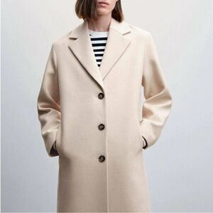 MANGO NWT Cream Beige Neutral Wool Coat Abrigo Bikini Straight Cut Lapels Buttoned Wool