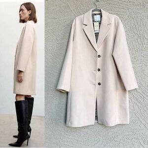 MANGO NWT Neutral Cream Blush Beige Neutral Wool Coat Lapels Wool Trench Coat