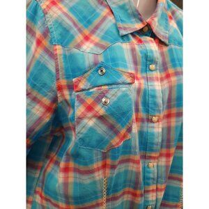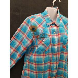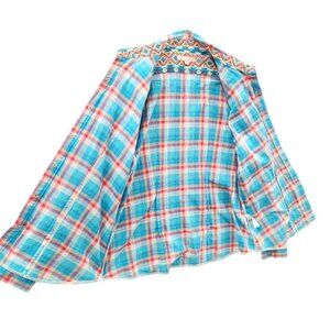 Tin Haul Womens Size L Western Plaid Button-Up Western Shirt Aztec Lining Cotto