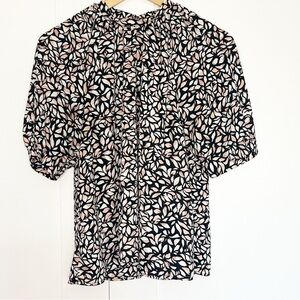 Evereve penny mock neck printed blouse Medium black pink office short sleeve