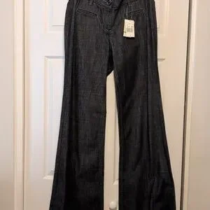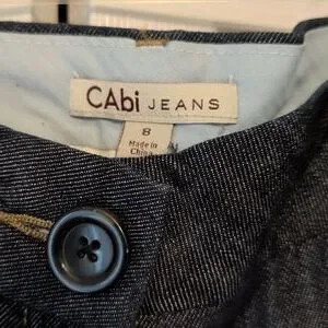 These stylish wide-leg denim pants from Cabi, feature a classic dark wash. They offer a comfortable fit with a modern flair. 33" inseam, flare bottom 12 3/4". Size 8 NWT.
