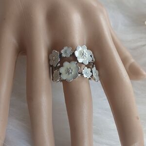 Charming white stretch bracelet with floral accents. Adds elegance to any look. strech