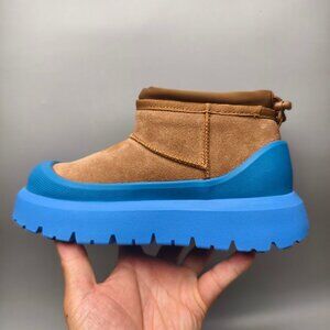 UGG Camel-Colored Womens Thick-Sole Snow Boots with Blue Trim
