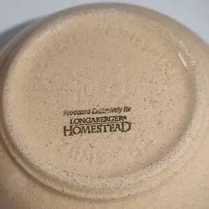 2 Longaberger Homestead Stonewear Bowls, Made By Buckeye Stonewear, Tan & Green