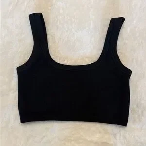 Elevate your wardrobe with this sleek black crop top. Perfect for any occasion, it offers both style and comfort. Thick and good quality material.