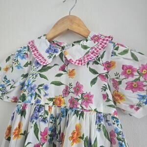 Vintage Rachel's Kids Girls Dress Size 8 Floral Gingham Pink Cottage Romantic