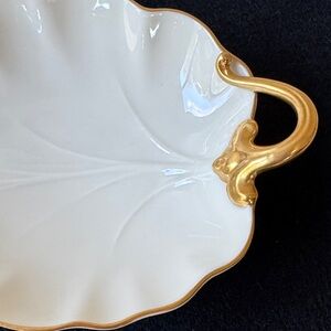 Vintage LENOX Elegant Gold and Cream Leaf-Shaped Dish Hand Decorated w/24K Gold