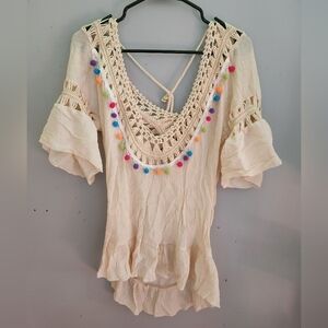 Hey cuties! 💕 Selling my SHEIN Boho Cream Crochet Cover-Up with Colorful Pom-Poms— it’s like new. Size M, fits true to size. Perfect for the beach/vacation! Ships fast + 15% off bundles. Thanks for stopping by my closet! 💖