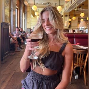 Both the top and shorts are size small. Color is a blue-ish charcoal.