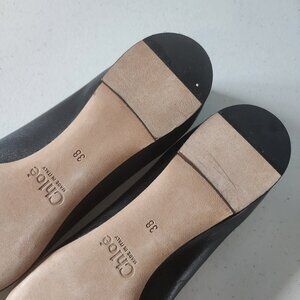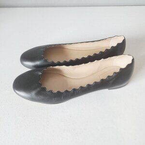 "NEW" Gorgeous Soft Smooth Black Leather Lauren Scalloped Ballet Flats By Chloe. Slip on Style, Leather Upper, Lining, Cushioned Foot Bed & Soles, Made in Italy, Rounded Toe with Signature Scalloped Edge, New, Never Worn, Only Tried On:)