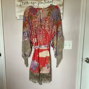 Spell & the Gypsy Floral Kimono Dress with Fringe Size Small