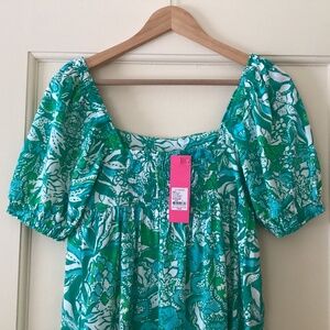 Lilly Pulitzer Delaney Cotton Tropical Print Short Puff Sleeve Square Neck Dress
