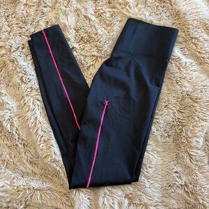 Tonal active stitch seam along back legline with X embroidery at top for stocking-inspired look