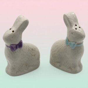 Vintage Bunny Salt & Pepper Shaker Set Ceramic With Purple & Blue Bow Ties