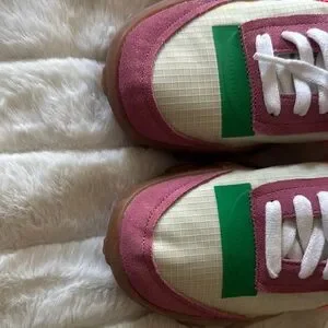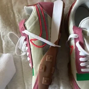Nike Waffle Racer 2X sneakers in pink, green, and white. Stylish and comfortable. Never been worn, please see pics