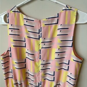 Chic mini dress by J. Crew. Features bold geometric patterns in pink and yellow. Ideal for a trendy look.
