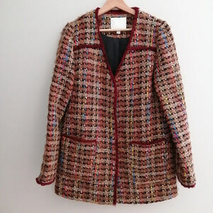 Anthropologie ett:twa Harlequin Boyfriend Colourful Tweed Long Jacket Small