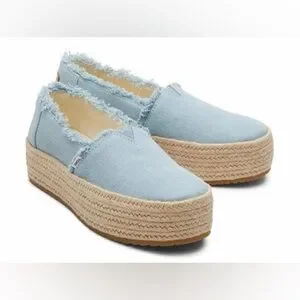 🍃Chic light blue espadrilles by Toms. Features a frayed edge design. Comfortable and stylish for any casual outing.